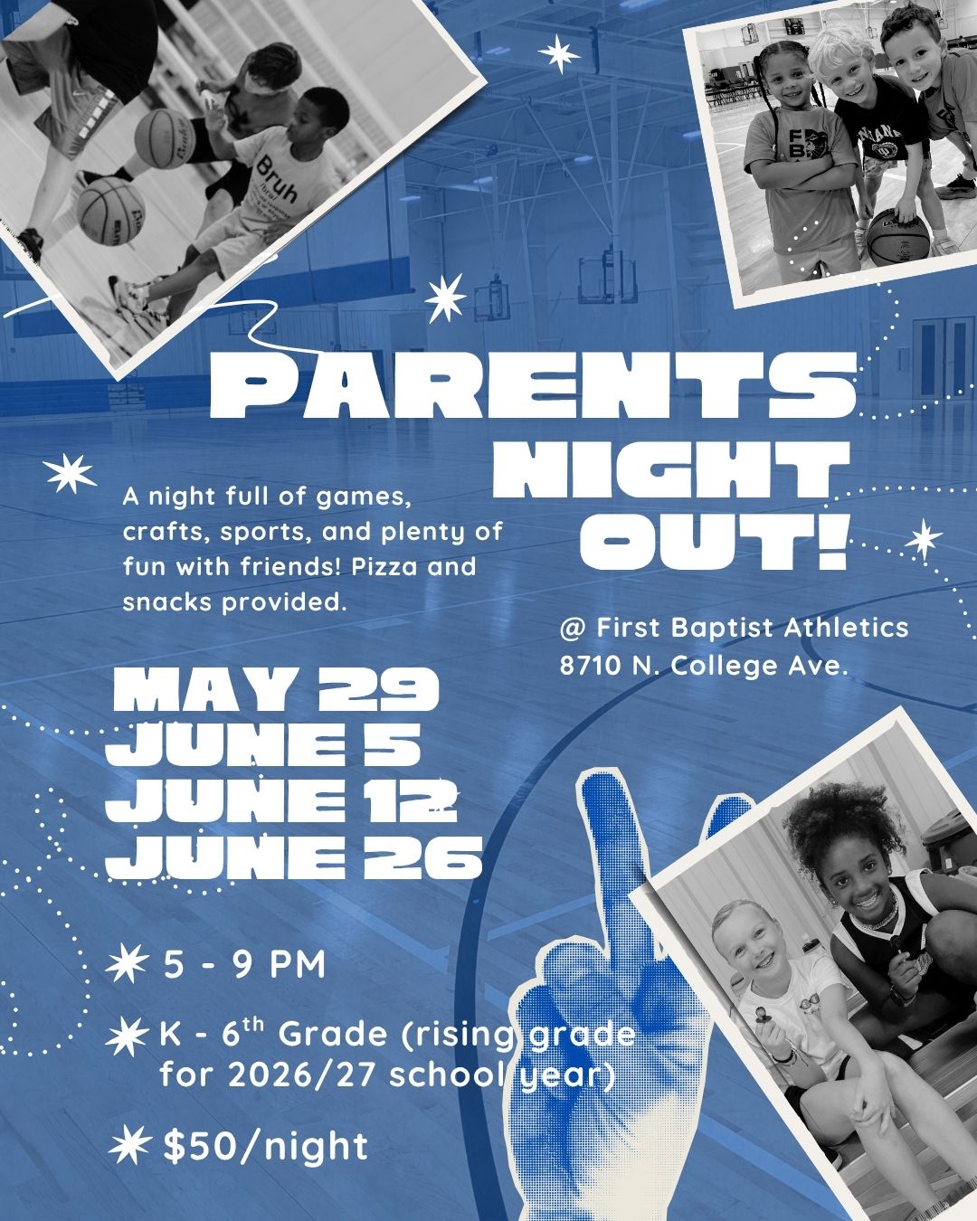 Parents Night Out gives parents the opportunity to enjoy an evening out while kids have a fun, active night at FBA. Children will enjoy organized games, activities, crafts, gym time, pizza, snacks and more. It's a great way for kids to stay active and have fun with friends, in a positive, safe environment.
